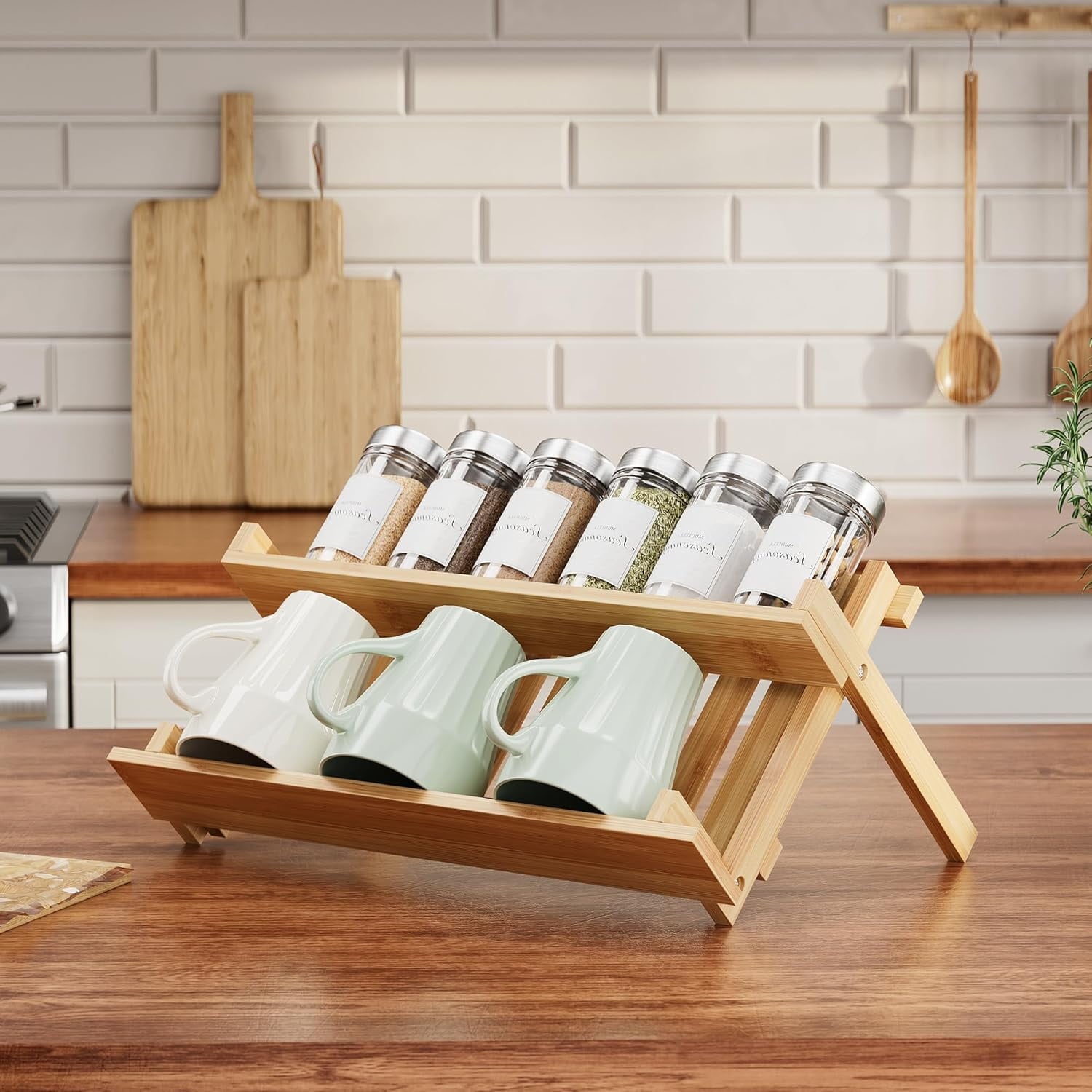 - Premium Bamboo Construction: Crafted from natural bamboo wood, this kitchen organizer is more durable than plastic racks and naturally resistant to moisture. The smooth, splinter-free finish complements any kitchen decor from modern to farmhouse styles while being easy to wipe clean.