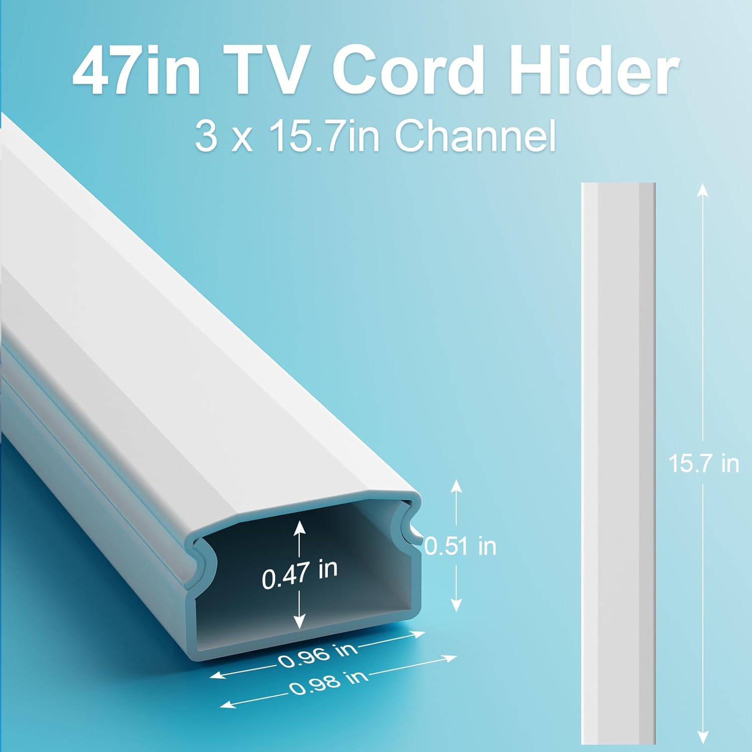 - PERFECT LENGTH FOR TV WALLS! Whether you have a high or low hanging wall mounted TV, the Yecaye 3pack cord hider will work well for your wall mounted TV hidden wire needs. You can use three 15.7in cable raceways separately or directly splice three cable raceways together seamlessly for a total length of 47in